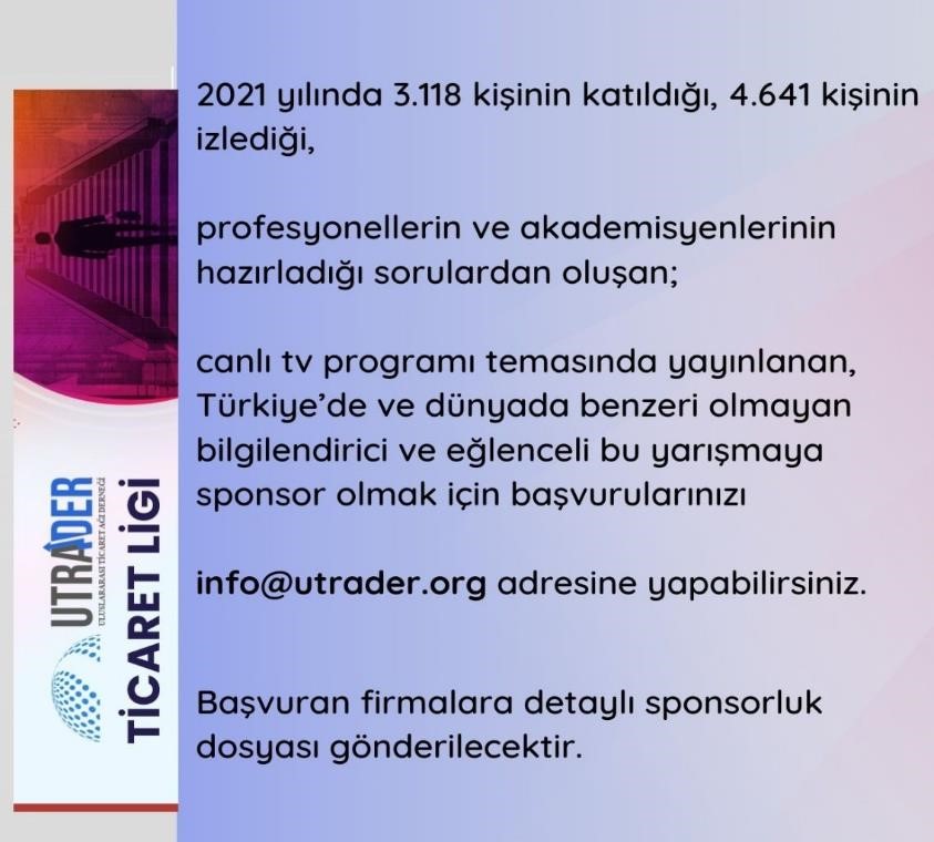 2021 yılı Eylül – Aralık aylarında gerçekleşen Birinci Sezon Yarışmamıza olan ilgi sonrasında ikinci sezon için de devam etme kararı vermiştik. Siz de yüzlerce kişinin yarıştığı ve sahasının profesyonelleri ve yöneticilerinin de katıldığı bu yarışmada yer almak istiyorsanız sosyal medya hesaplarımızı hemen takibi alın. Şayet yarışmaya sponsor olmak istiyorsanız, info@utrader.org adresine mail göndermeniz yeterlidir.