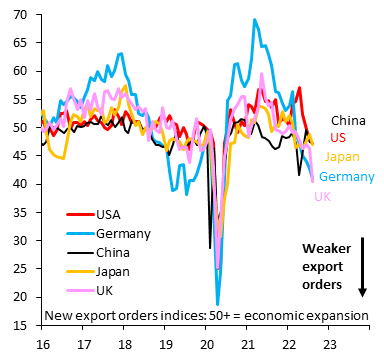 IIF (Institute of International Finance) Baş Ekonomisti ve Goldman Sachs’ın eski stratejisyeni Robin Brooks’un analizine göre Birleşik Krallık, Almanya PMI’larında devam eden düşüşteki trendin Avrupa Bölgesini komple bir resesyona sokabileceği ve küresel resesyonun ilk sinyallerinin buradan başlayacağını duyurdu.