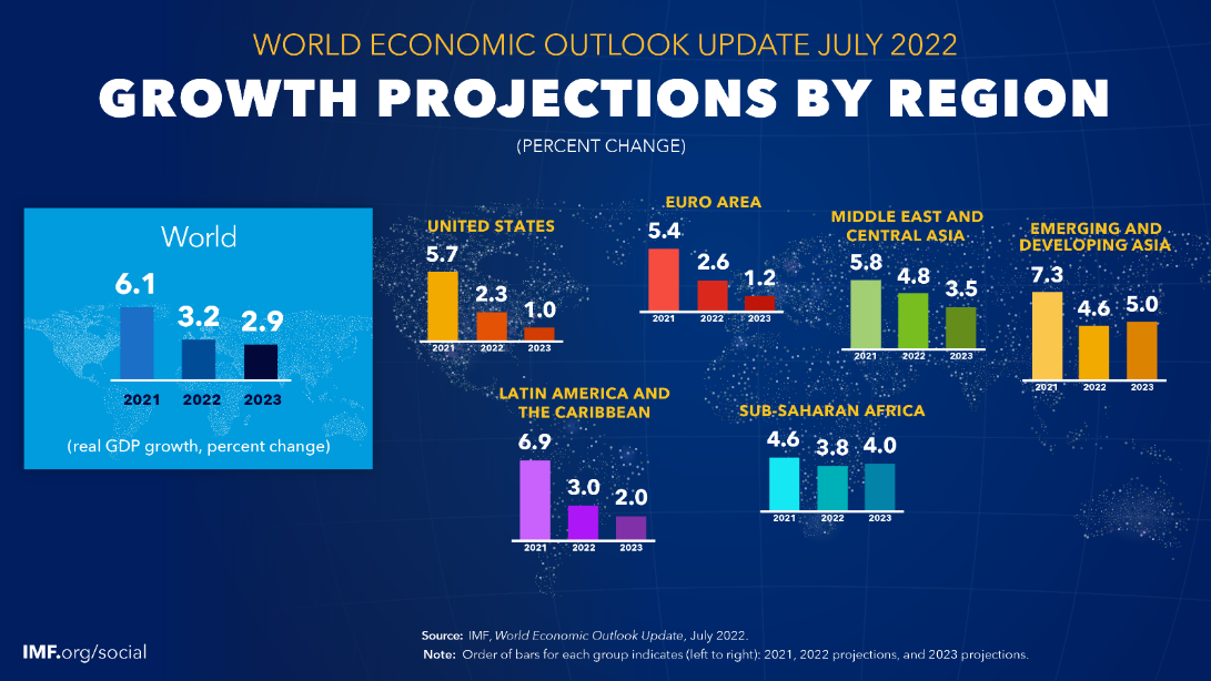 Temmuz 2022’de Dünya Ekonomik Görünümü Raporunu güncelleyen International Monetary Fund (IMF), Nisan 2022’deki öngörülerin nasıl değiştiğini ve 2022-2023 yılları projeksiyonlarının nasıl olabileceğini ele aldığı raporunu yayınladı.