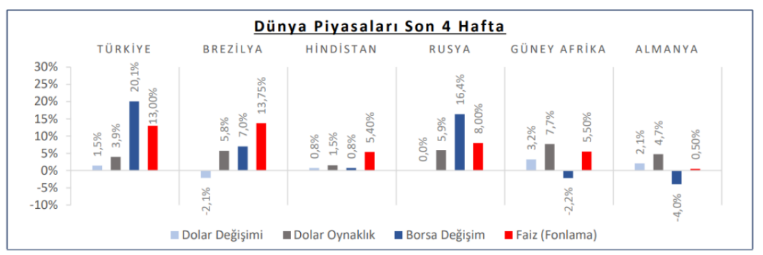 Ay başında doların Euro’yu geçmesi ihracatçılar için yönetilmesi gereken önemli bir risk olarak öncelikli konulardan birini oluşturuyor. Dünya piyasalarındaki Ağustos ayı dolar, borsa, fonlama verilerini incelediğimizde doların oynaklığı ve borsanın yükselmesi baz alınırsa Türkiye’nin ayrıştığını söyleyebiliriz.