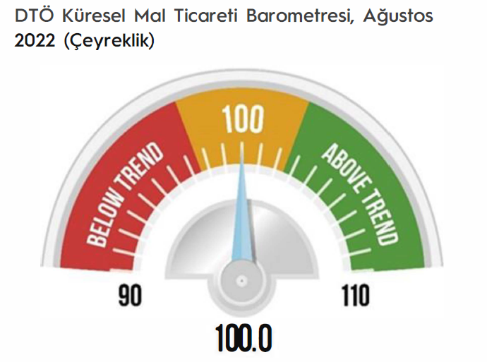 Dünya Ticaret Örgütünün, Küresel Mal Ticareti Barometresi Ağustos ayında 100 olarak ölçüldü. Tamamlayıcı endeksler göz önünde bulundurularak yapılan hesaplamada ise yıllık ticaret büyümesinin daha da yavaşlayabileceği öngörüsü ortaya kondu.