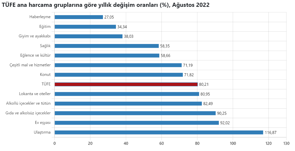 Kaynak: TÜİK, Tüketici Fiyat Endeksi, Ağustos 2022