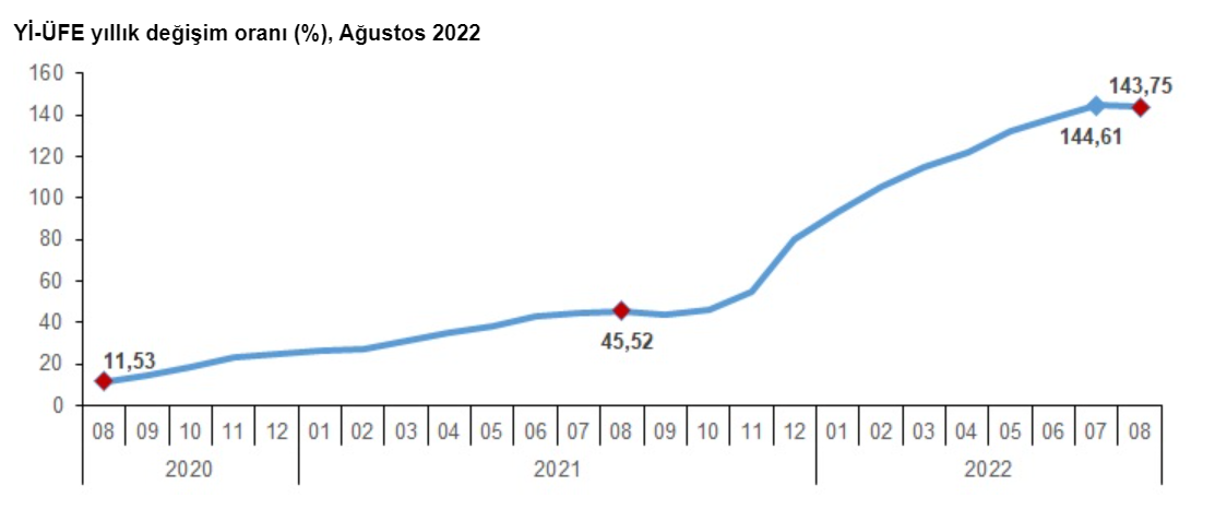 Kaynak: TÜİK, Yurt içi Üretici Fiyat Endeksi, Ağustos 2022