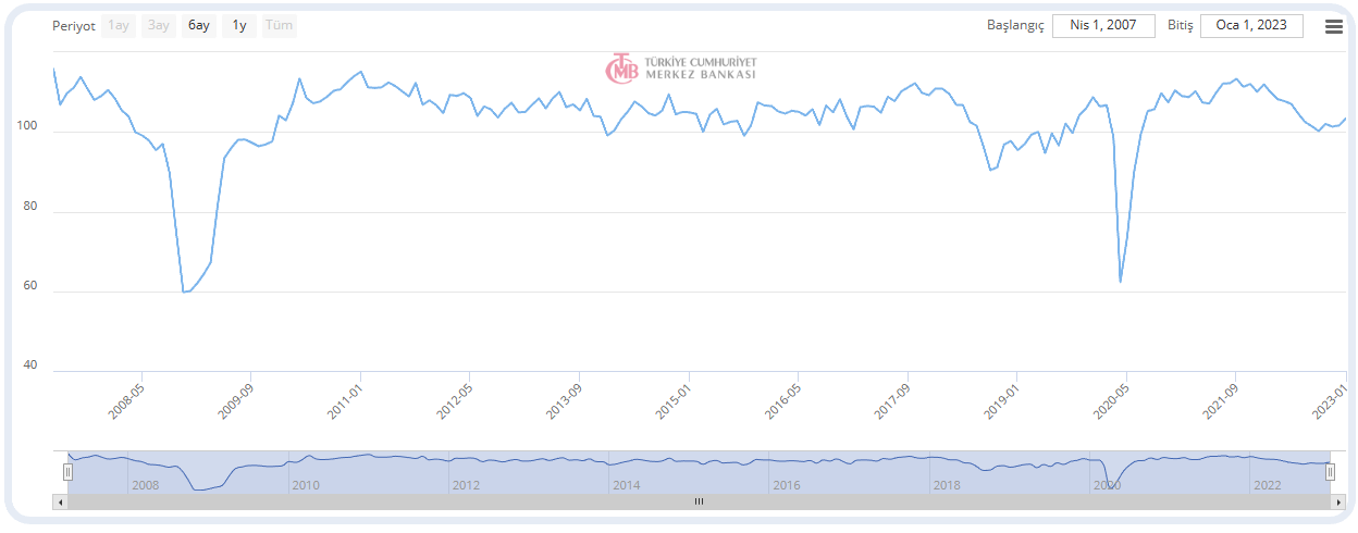 Kaynak: TCMB, Reel Kesim Güven Endeksi, Ocak 2023