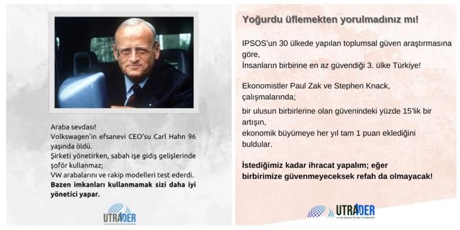 Şimdilik Utrader’dan haberlerimiz bu kadar, 13 Şubat’ta yayınlanacak 24. sayımızda da projelerimiz ve etkinliklerimizi duyurmaya devam edeceğiz. Tüm etkinlik ve güncel faaliyetlerimizden haberdar olmak için web sitemizi ve sosyal Medya hesaplarımızı takip etmenizi öneririz. Web sitemiz için TIKLAYINIZ