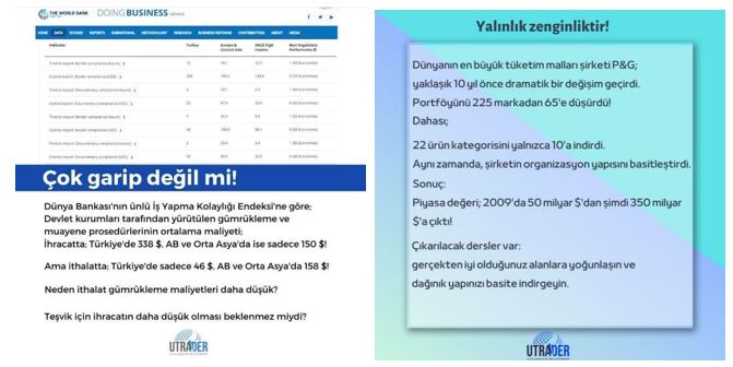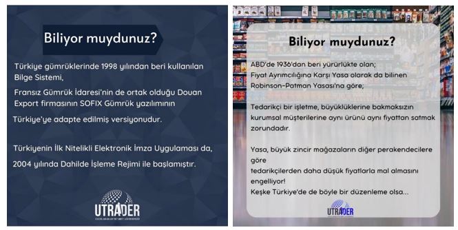 Dış ticarete yönelik teknik bilgileri paylaştığımız ve güncel uygulamaları gündeminize getirdiğimiz UtraderBİLGİ serimizin on altı, on yedi, on sekizinci ve on dokuzuncu yazıları yayınlandı.
