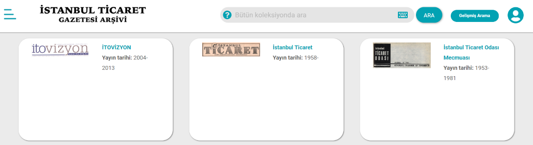 İstanbul Ticaret Odası (İTO), 1885’ten bugüne kadar, Oda’nın yayınladığı Osmanlıca, Fransızca, Almanca, İngilizce tüm periyodik yayınları internet ortamına yükleyerek, araştırmacıların hizmetine sundu. Ticaret hayatının son 137 yılına şahitlik eden İstanbul Ticaret Gazetesi Dijital Arşivine (İTGA) ulaşmak için aşağıdaki linki kullanabilirsiniz.
